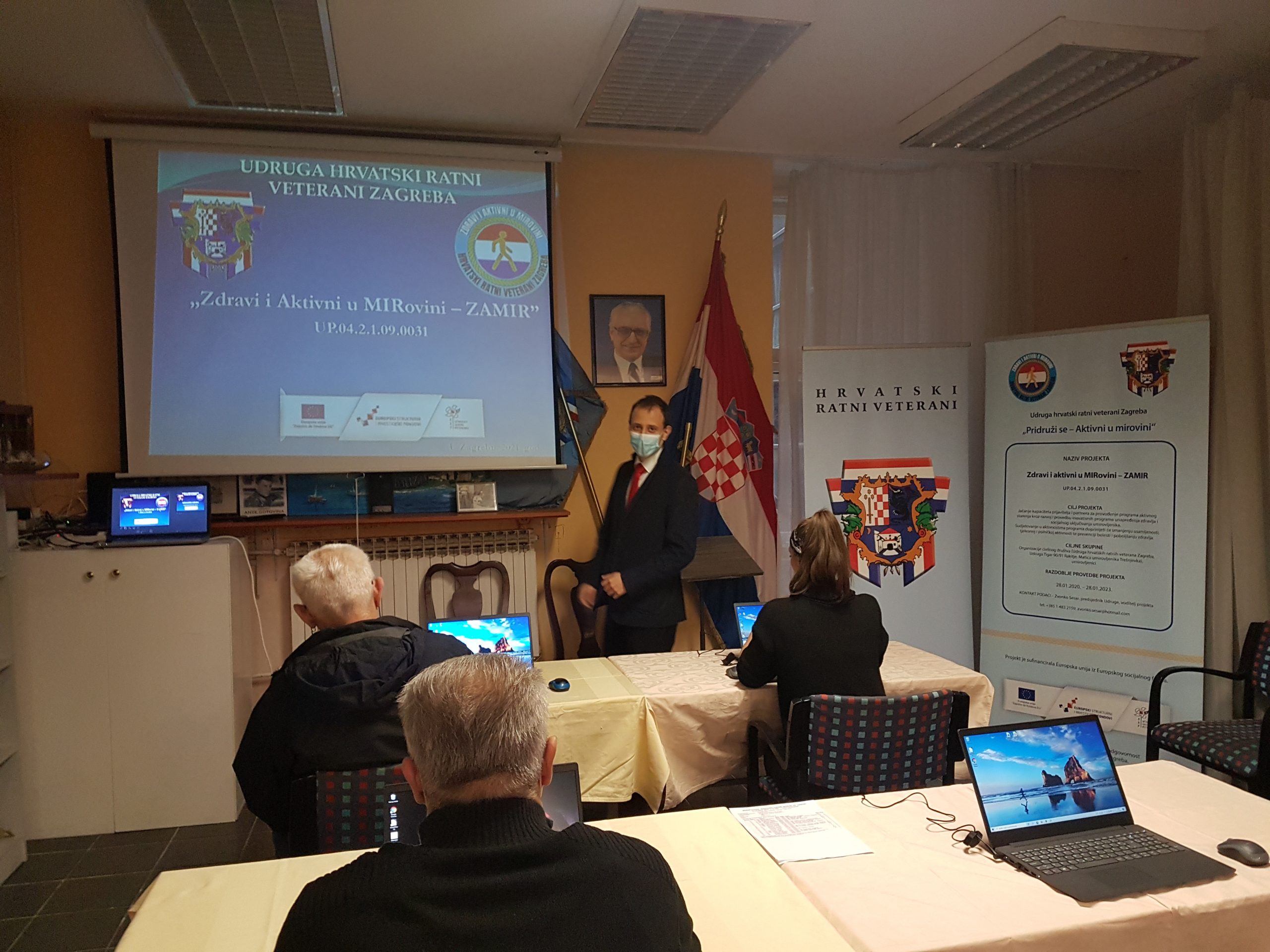 U četvrtak 25.11.2021., od 15.00h do 17.00 sati održana je trideset i osma informatička radionica, te radionica za grupu 17 u sklopu EU projekta Zdravi i Aktivni u MIRovini – ZAMIR. Radionica je održana u prostorijama Udruge hrvatski ratni veterani Zagreba.