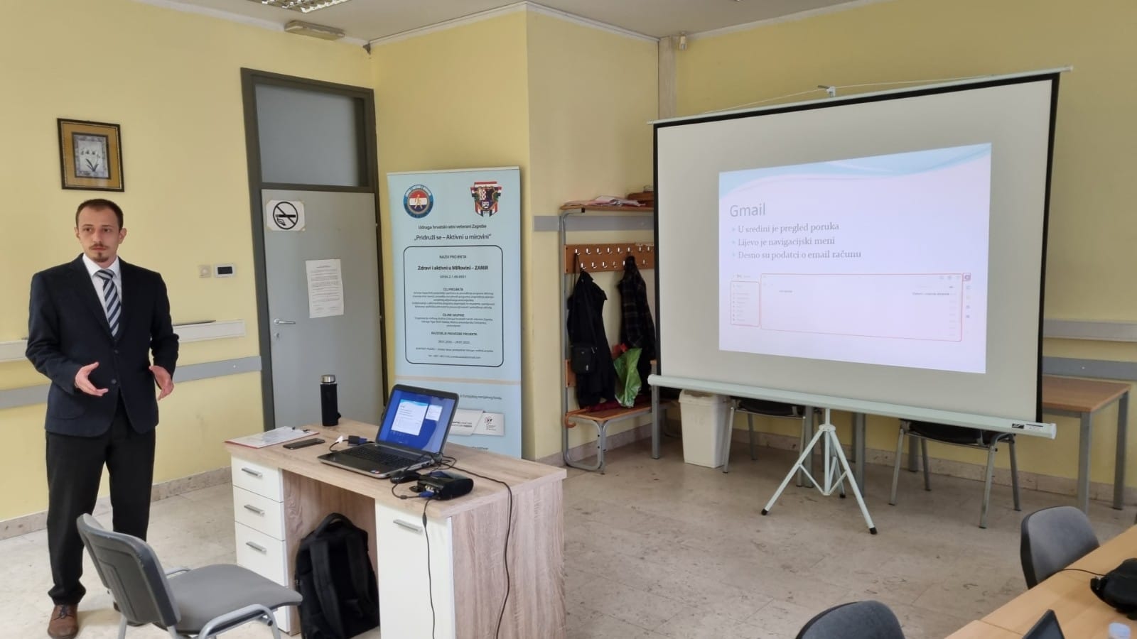 Na tečaju polaznici su nastavili vježbe s prošlog predavanja. Osim slanja mailova preko mobitela, ovaj put su isto činili na računalu, te im je pokazano kako se snalaziti u menijima g-mail aplikacije uključujući spam, poslane poruke i skice. Nastavljajući dalje, polaznicima su objašnjene razlike između “normalnih” slika i .gif animacija, te kako koristiti iste i stickere na WhatsApp i Viber aplikacijama.