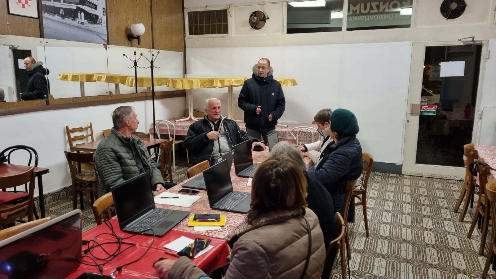 Radionica za prvu grupu je započela ponavljanjem gradiva s prošlih satova. Nakon ponavljanja održano je predavanje o e-građani sustavu. Polaznicima je demonstrirano kako ući u sustav, te su polaznici pitali za različite service (npr. izdavanje potvrde o nekažnjavanju i sustavu Zdravlje) koji su im poton pokazani.