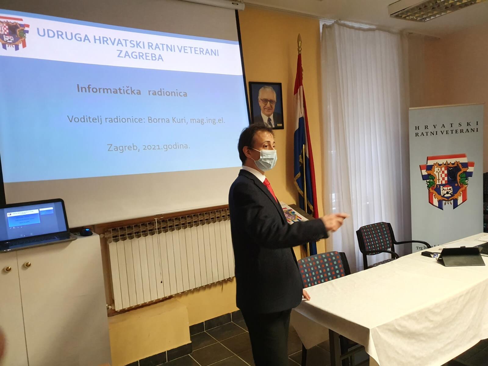 U prostorijama Udruge Hrvatski ratni veterani Zagreba u subotu 20.02.2021. održana je jedanaesta radionica o primjeni interneta i aplikacija na mobitelu i računalu . Radionica je održana uz pridržavanje svih epidemioloških mjera i odredbi propisane socijalne distance uz ograničen broj polaznika. Voditelj radionice bio je Borna Kuri mag.ing.el. koji je nazočne prvo u teoretskom dijelu a kasnije u praktičnom educirao o načinu korištenja tzv.pametnih mobitela i kako se služiti aplikacijama g-mail i Zoom. Nakon teoretskog i praktičnog dijela edukacije radionice polaznici su sami primjenili naučene vještine korištenja aplikacija.