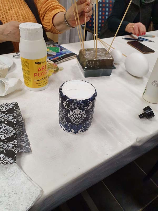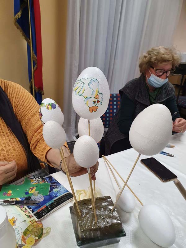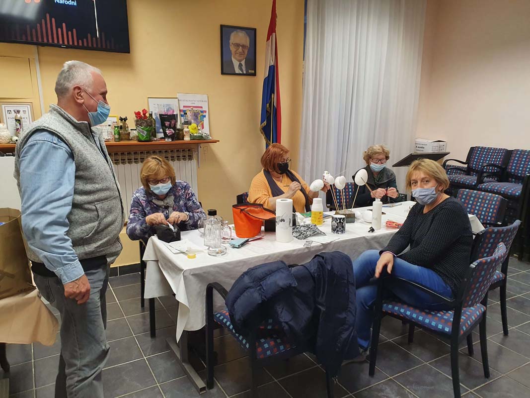 U utorak, 09.03.2021., održana je šesta kreativna radionica uoči blagdana Uskrs. Voditeljica Mirjana Novačić prikazivala je te educirala polaznike radionice o dekupaž tehnici primijenjenoj na staklenim bocama te stiroporu u obliku jaja. Polaznici radionice su izrađene ukrasne mogli ponijeti kući. Ista se održala u prostorijama Udruge hrvatski ratni veterani Zagreba.