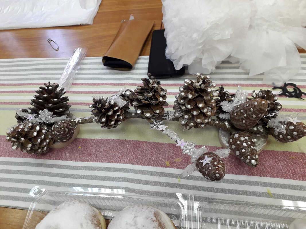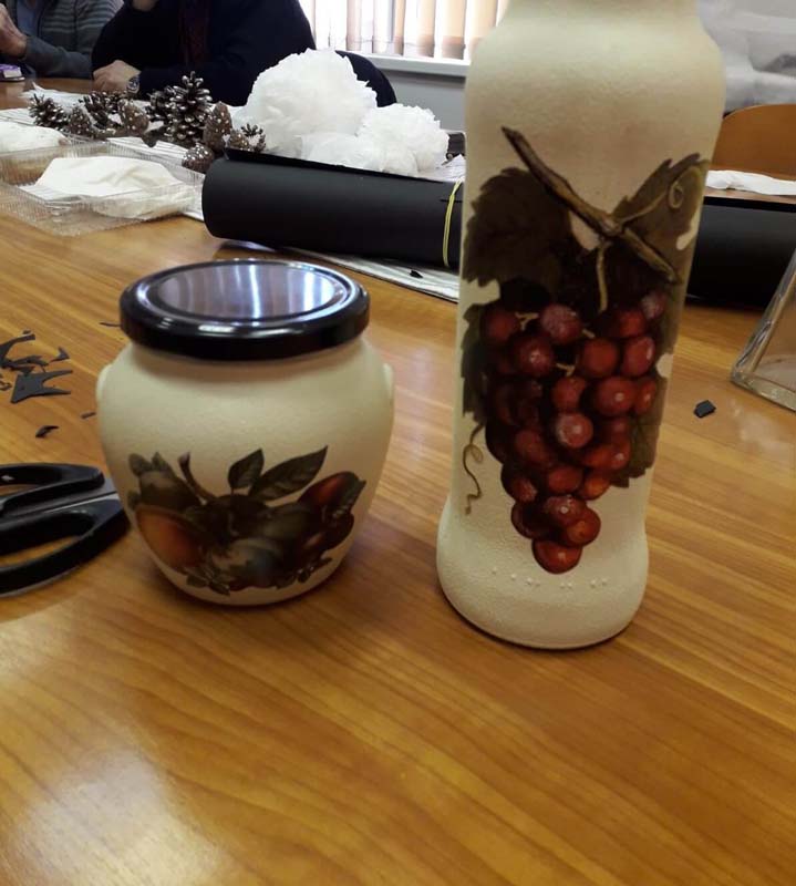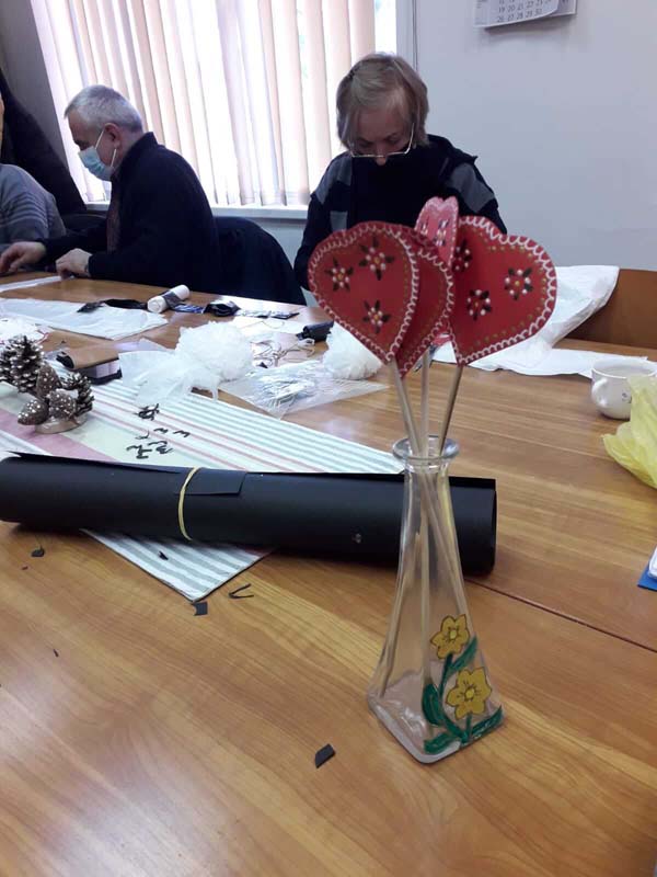U ponedjeljak, 22.03.2021., održana je deseta kreativna radionica. Voditeljica Mirjana Novačić prikazivala je te educirala polaznike radionice o dekupaž tehnici na staklenim bocama koristeći konturne boje za staklo i akrilne boje na bazi vode. Koristeći prirodne češere, polaznici su izrađivali ukrase uoči blagdana Uskrs. Ukrasi srca izrađivani su koristeći hamer papir. Polaznika radionice su izrađene ukrasne mogli ponijeti kući.