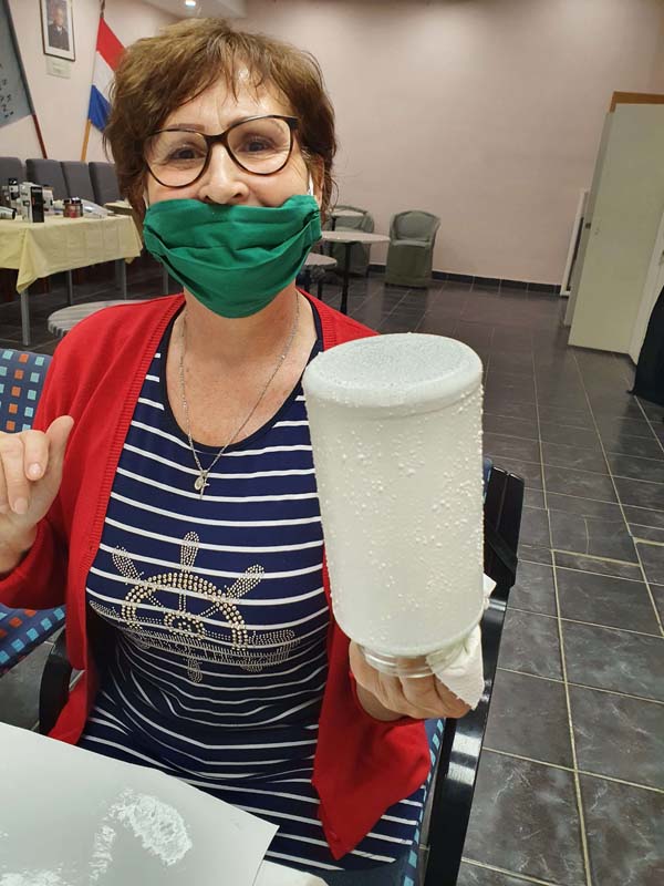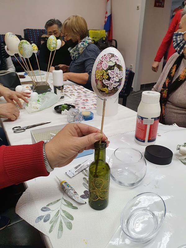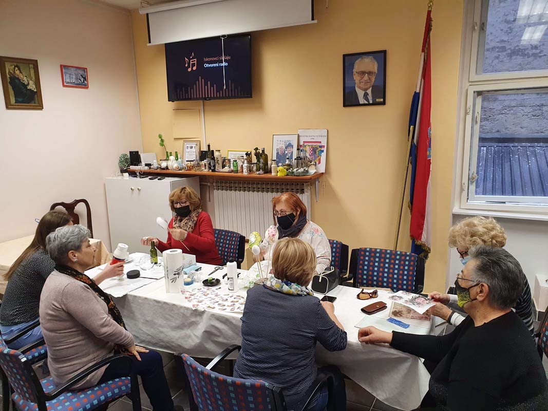 U utorak, 23.03.2021., održana je jedanaesta kreativna radionica. Voditeljica Mirjana Novačić prikazivala je te educirala polaznike radionice o dekupaž tehnici koristeći ljepila, konturne boje za staklo, akrilne boje na bazi vode, salvete i drugo. Osam polaznika radionice, izrađene ukrasne moglo je ponijeti kući. Ista se održala u prostorijama Udruge hrvatski ratni veterani Zagreba.