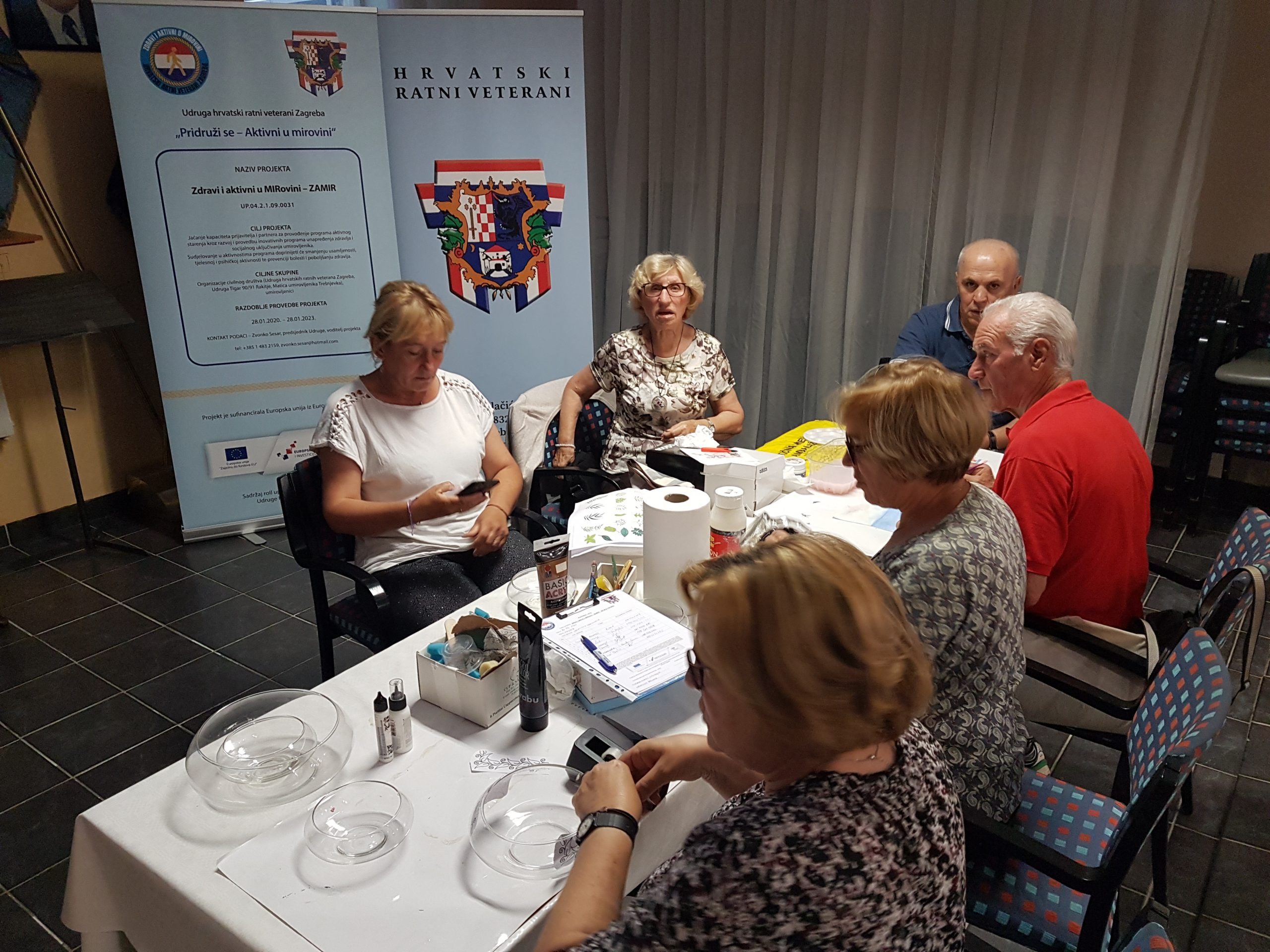 U srijedu, 16.06.2021., od 14.00h do 17.00h, održana je kreativna radionica u sklopu projekta Zdravi i Aktivni u MIRovini – ZAMIR u prostorijama Udruge hrvatski ratni veterani Zagreba.