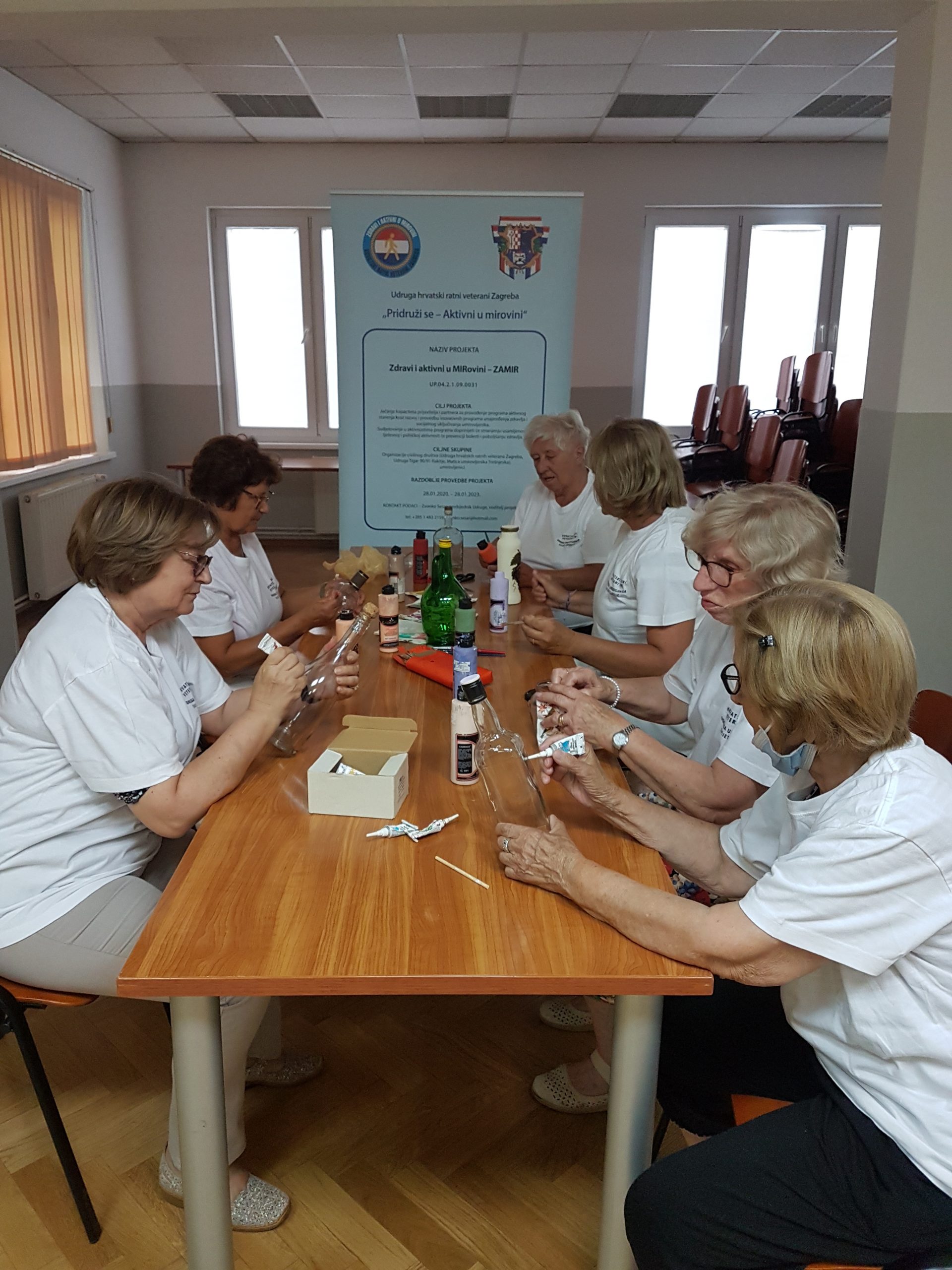U četvrtak, 08.07.2021., od 13.00h do 16.00h, održana je kreativna radionica u sklopu projekta Zdravi i Aktivni u MIRovini – ZAMIR u prostorijama Udruge hrvatski ratni veterani Zagreba.