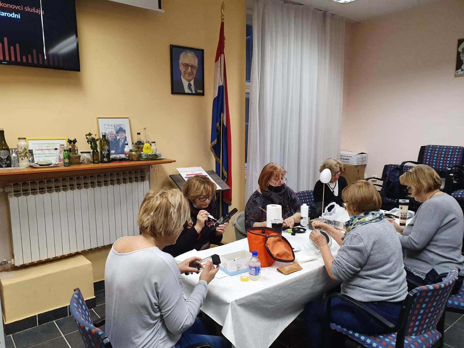 U utorak 02.03.2021. održana je treča kreativna radionica  . Radionica je održana uz pridržavanje svih epidemioloških mjera i odredbi propisane socijalne distance uz ograničen broj polaznika. Voditeljica radionice Mirjana Novačić prvo je polaznike educirala  a zatim u praktičnoj primjeni pokazala tehniku ukrašavanja i oslikavanja ambalaže od stakla. Nakon teoretske i praktične  edukacije voditeljice radionice polaznici su sami primjenili naučene vještine izrade ukrasa.