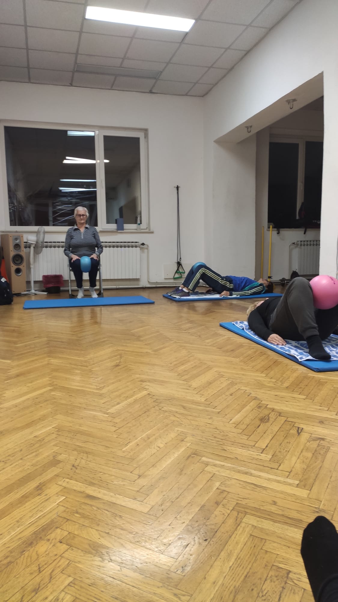 Kraj mjeseca polaznici su sa voditeljicom završili sa korektivnom gimnastikom u kojoj su koristili malu soft loptu. Intenzitet gimnastike je bio umjeren, a fokus treninga na gornji dio tijela.. prsa, ruke, leđa i trbuh. Nakon kratkog zagrijavanja prešli su na glavni dio sata gdje se upotrebljavao koncept kružnog treninga. Koncept kružnog treninga je više postaja (vježbi) koje se ponavljaju više puta sa malim brojem ponavljanja same vježbe. Sat su završili sa dugim istezanjem i opuštanjem uz dobru glazbu. Radionica je održana uz pridržavanje svih epidemioloških mjera i odredbi propisane socijalne distance uz ograničen broj polaznika.