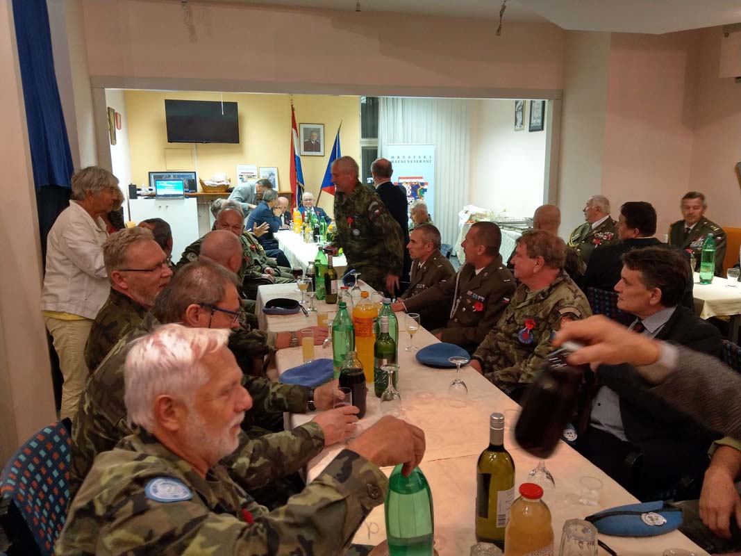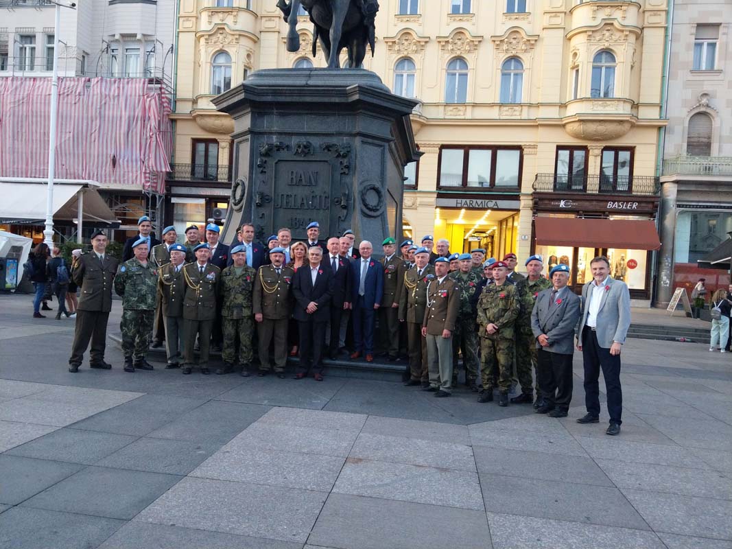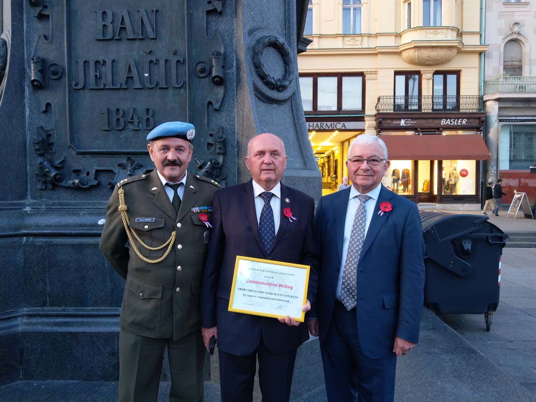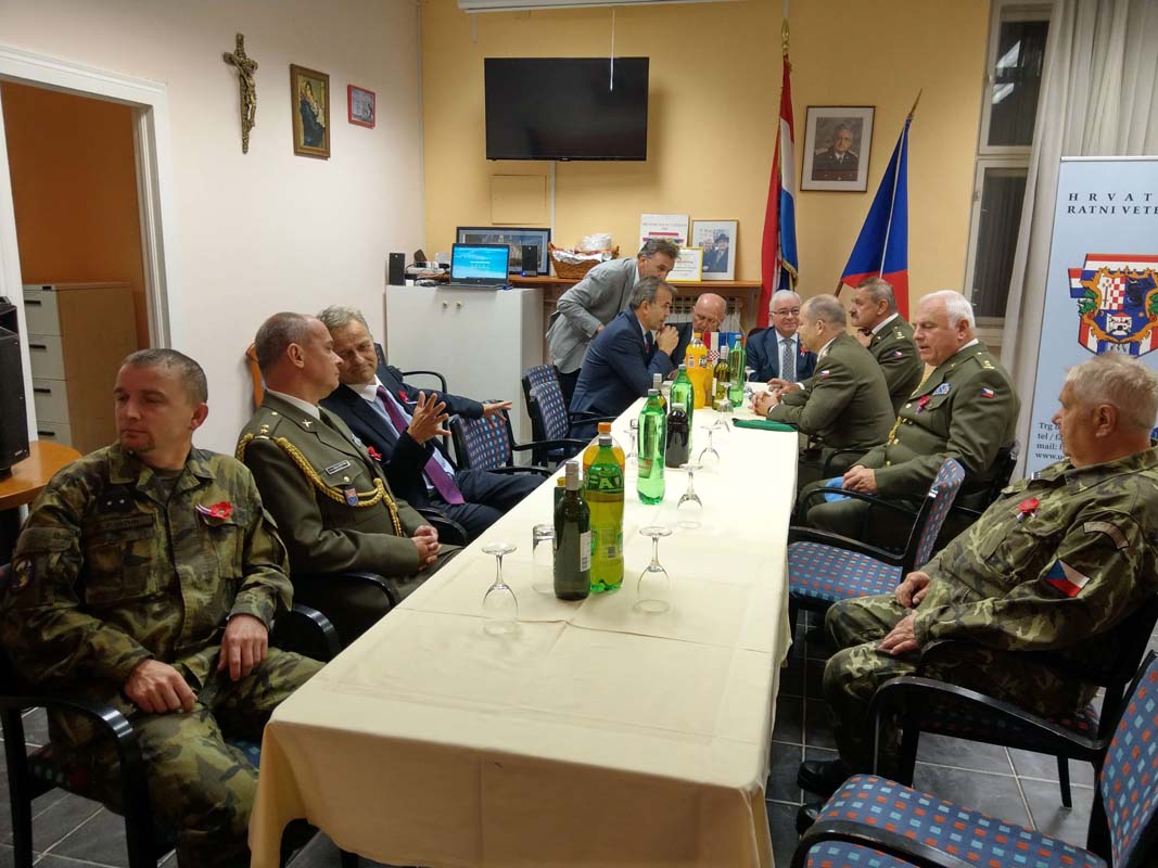 Nakon odavanja počasti na Mirogoju uputili smo se na Trg bana Josipa Jelačića gdje smo se fotografirali ispod spomenika Bana Jelačiću a potom smo se uputili u prostorije udruge Hrvatskih ratnih veterana. Po dolasku u prostorije udruge predsjednik mr.sc. Zvonko Sesar pozdravio je njegovu exselenciju Veleposlanika Republike Češke te izaslanika ministra Hrvatskih branitelja Tome Medveda, gospodina Ivana Kozlicu i sve nazočne goste a potom su odsvirane češka i hrvatska himna.