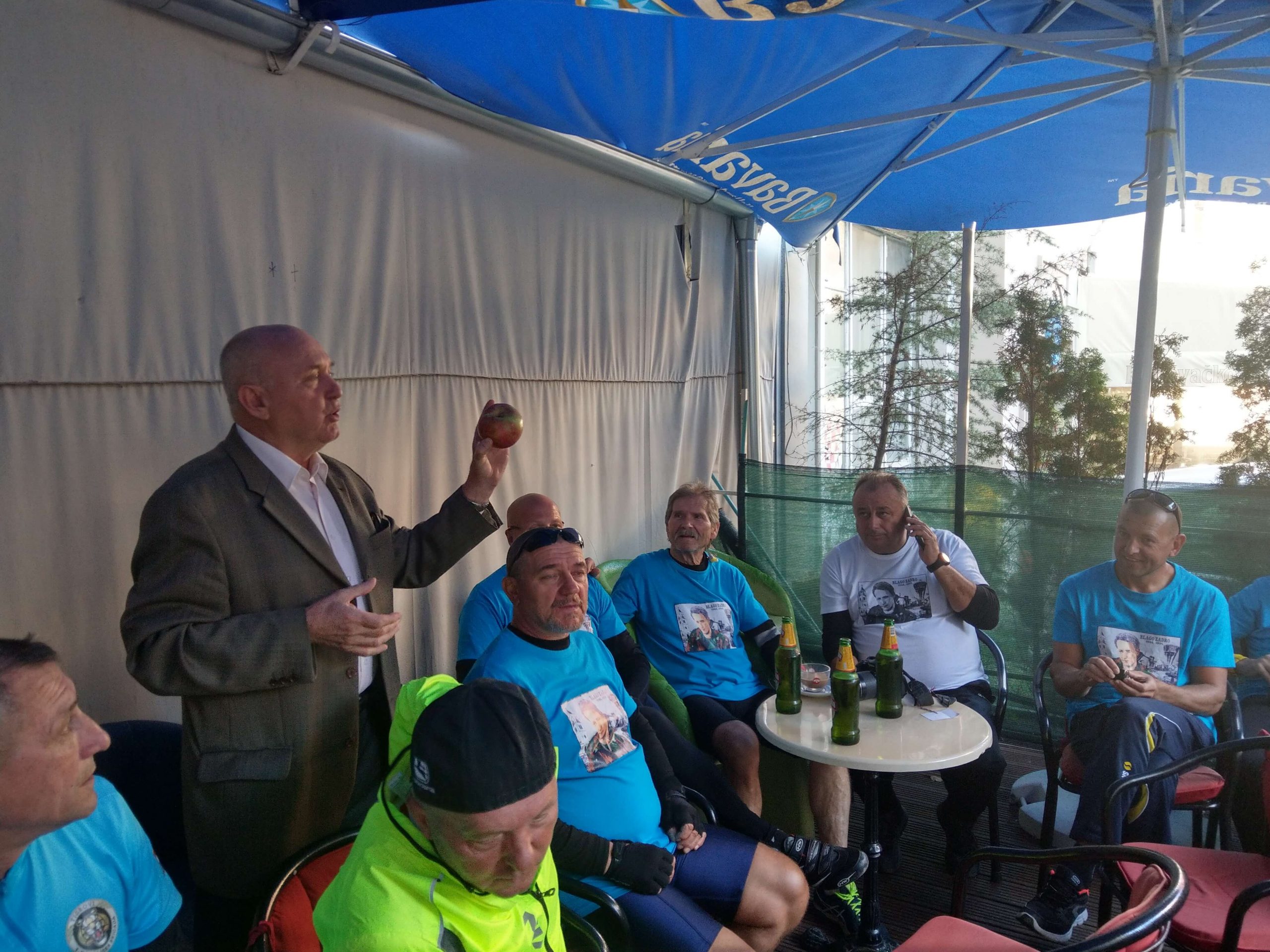 Tom prigodom organizirali smo druženje sa okrjepom za maratonce a predsjednik Udruge mr.sc.Zvonko Sesar je naše goste darovao sa ekološkim domaćim jabukama koje proizvode naši vrijedni branitelji u svojim braniteljskim zadrugama i OPG-ima.